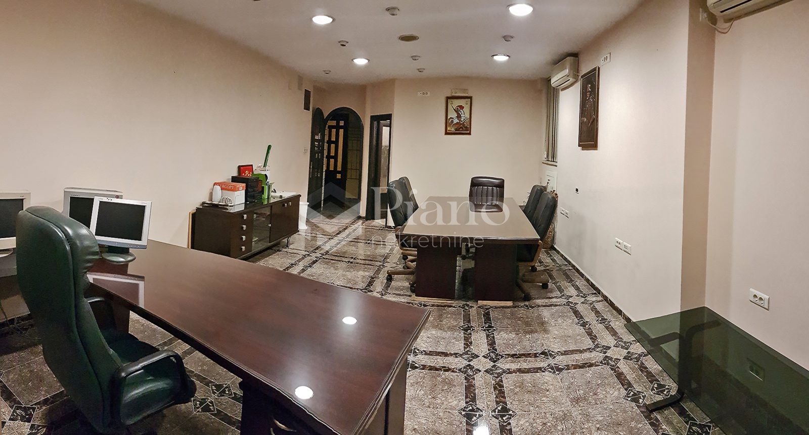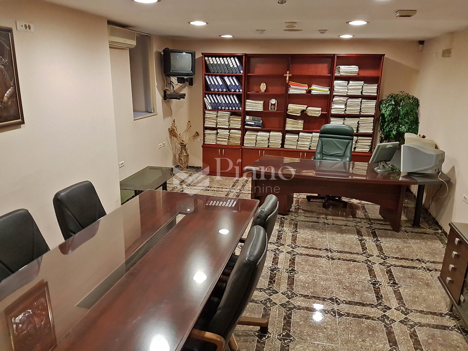 9Office space is located in the center of the city in the basement. There are two rooms of 50m2, and the price of renting one of those two rooms is 500 euros. Both rooms have equipped kitchen and bathroom with shower, two air conditioners, several telephone lines, internet, ceiling sound, video surveillance, alarm, conference table, library ... Ideal for larger firms.