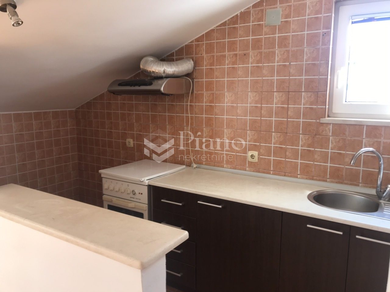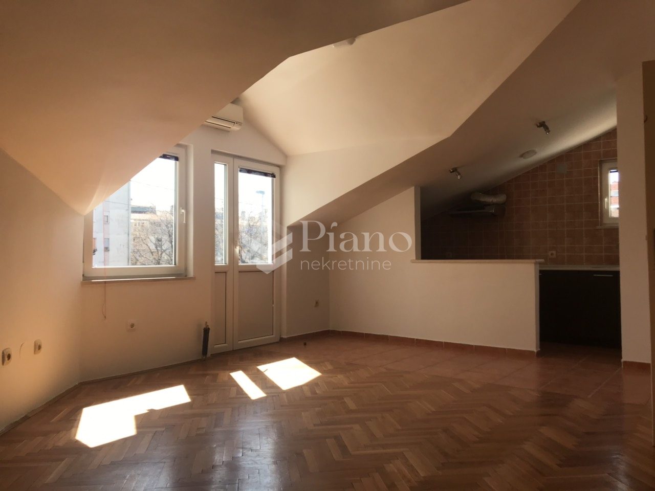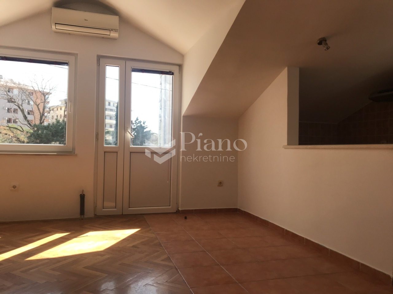 Unfurnished two bedroom apartment on the first floor of the house, next to the "Lida" store. Great location, functional, has 2 terraces, air conditioning. It has kitchen, large yard. Ideal for families.