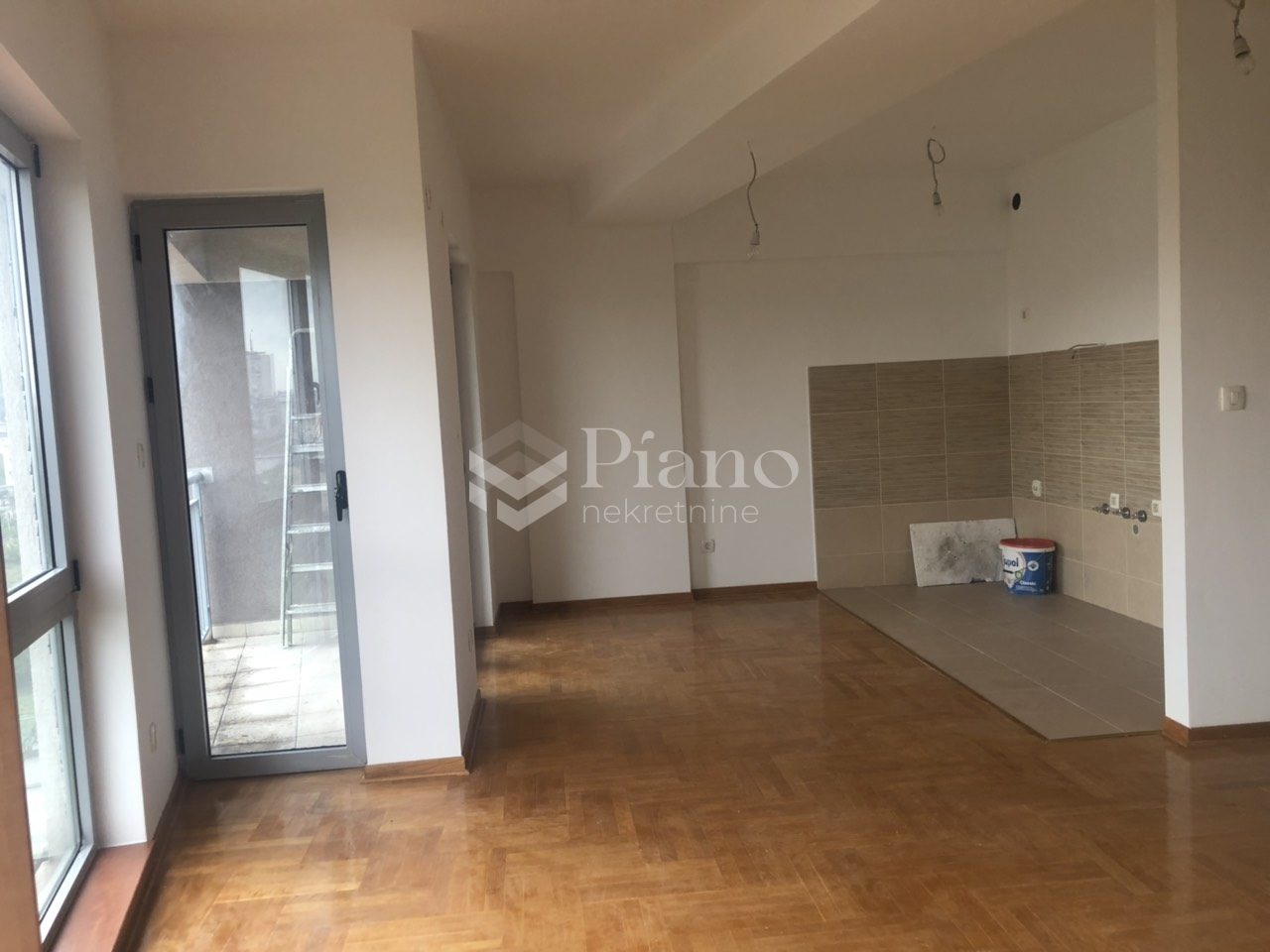 It has two rooms, two bathrooms, living room, one terrace, parking space.