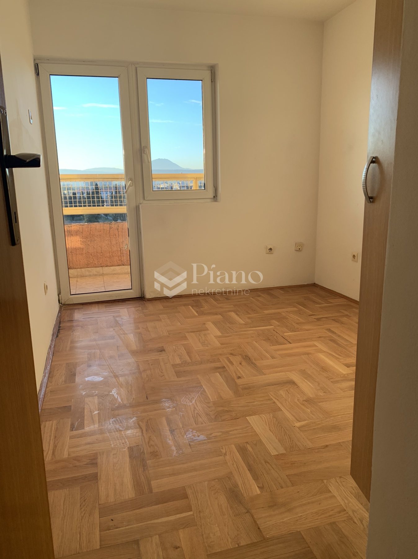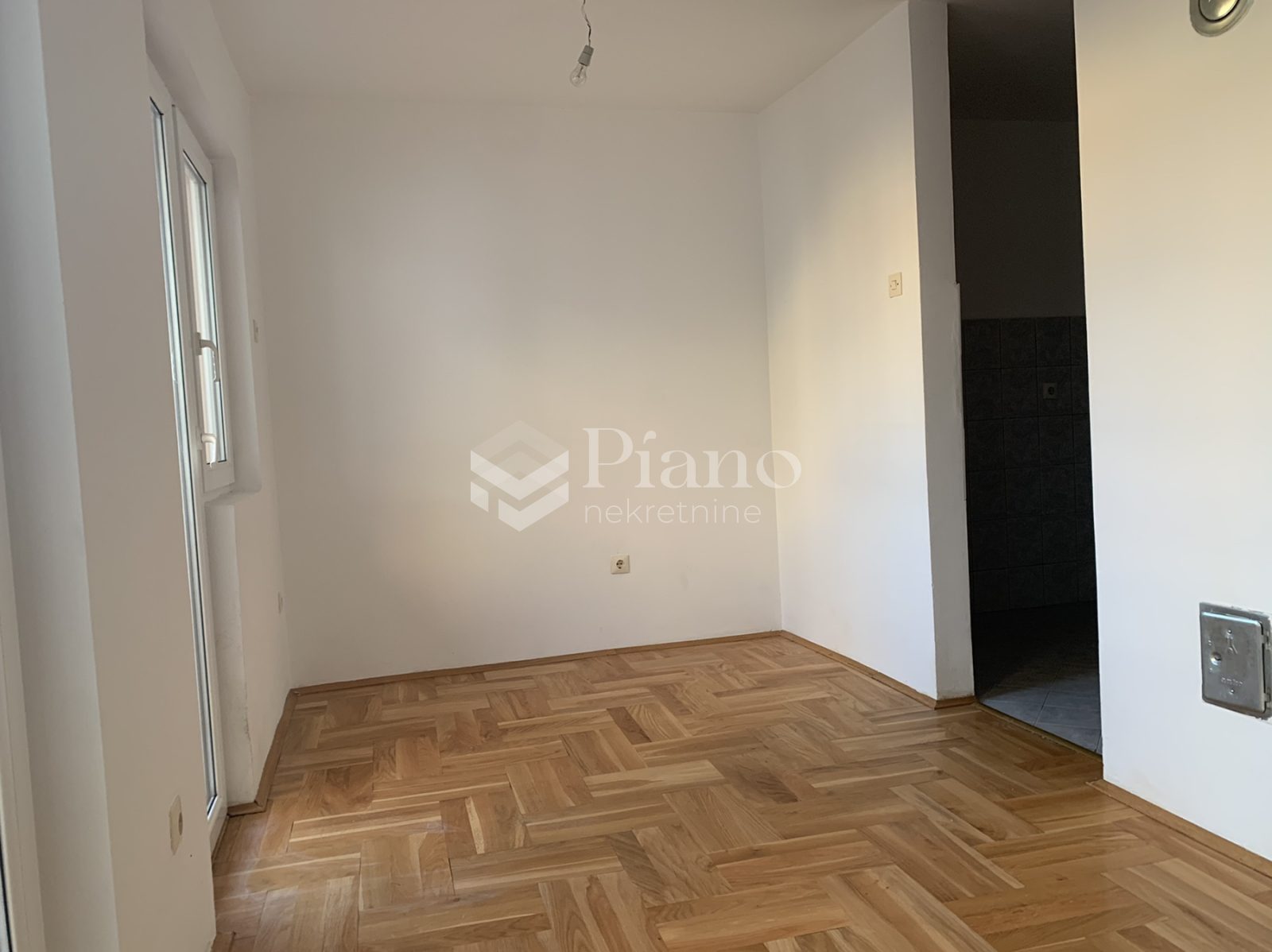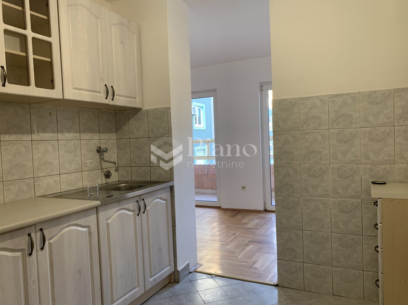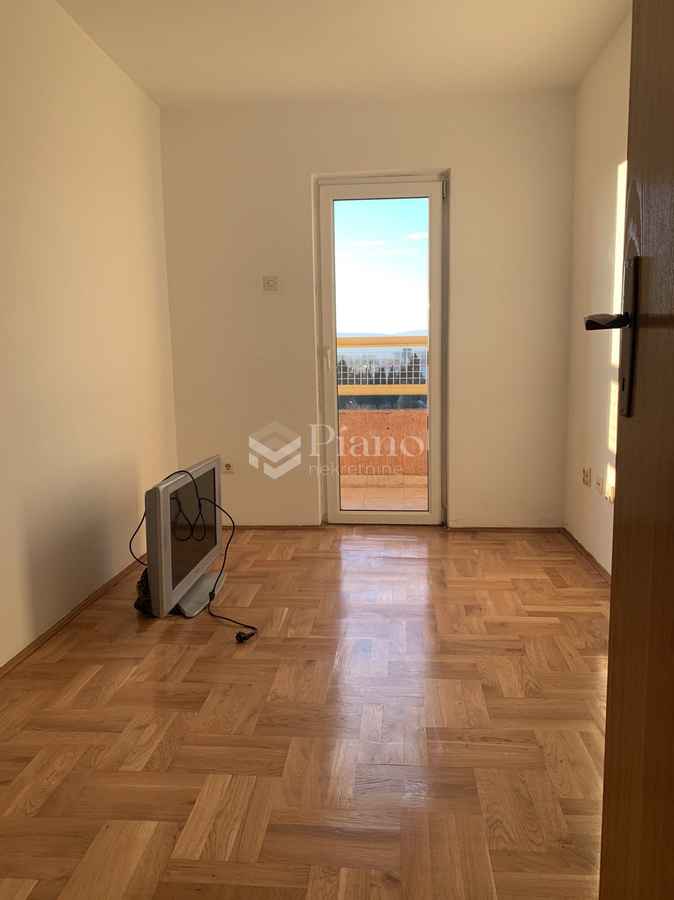 Unfurnished two bedroom apartment is located on the fourth floor of the building at the Old Airport, has a huge terrace on both sides of the apartment, bathroom and toilet, is air conditioned and has kitchen elements and a built-in closet in the room.