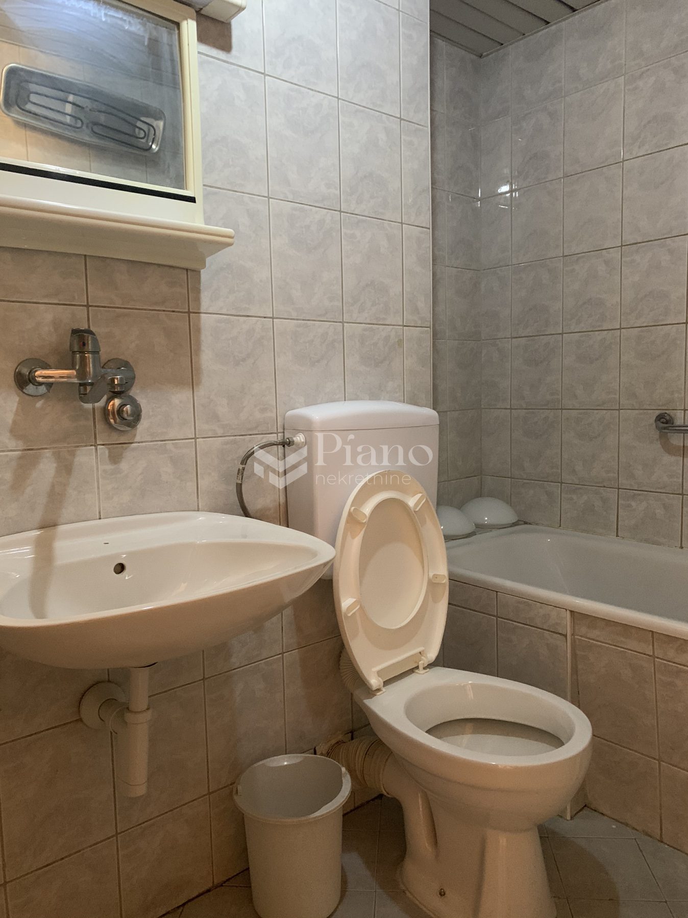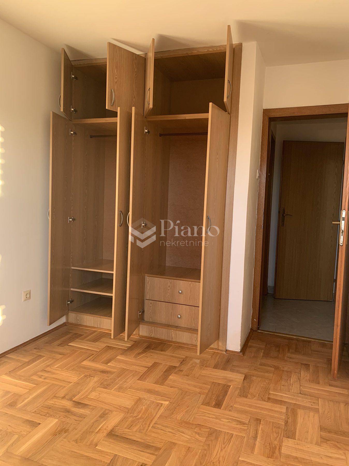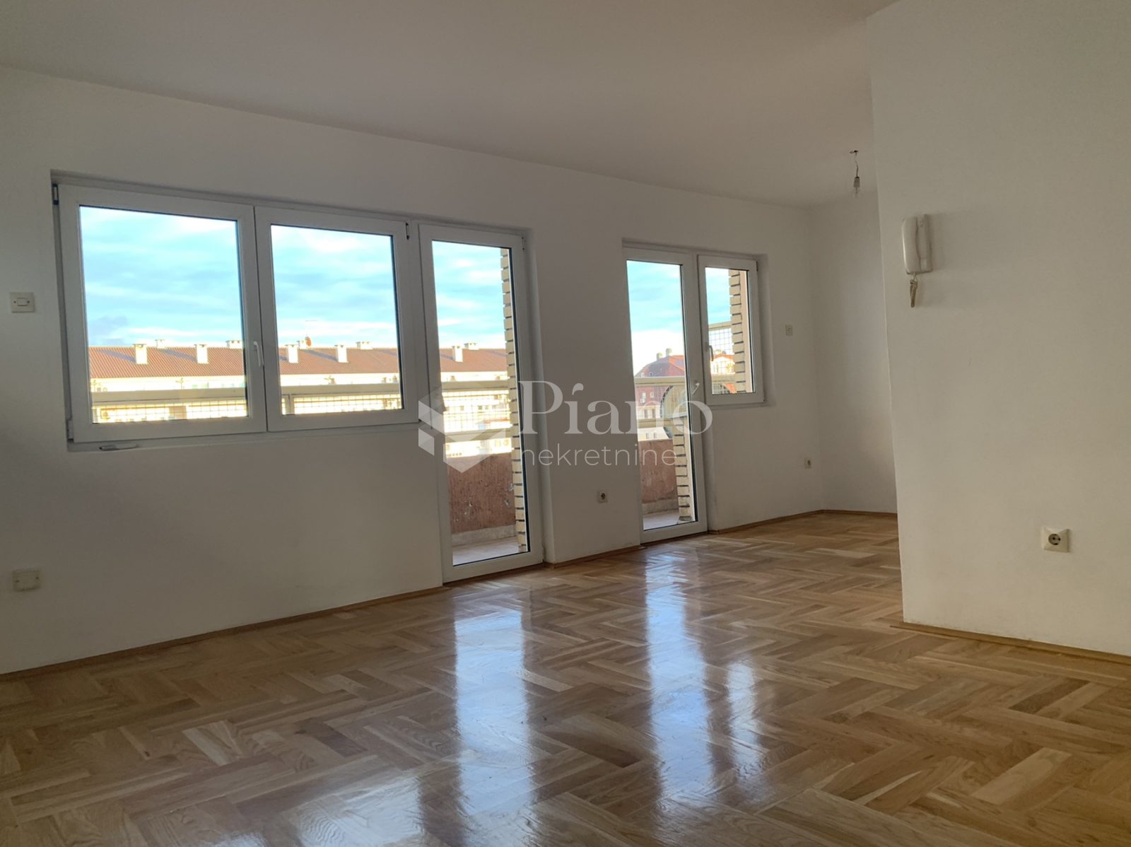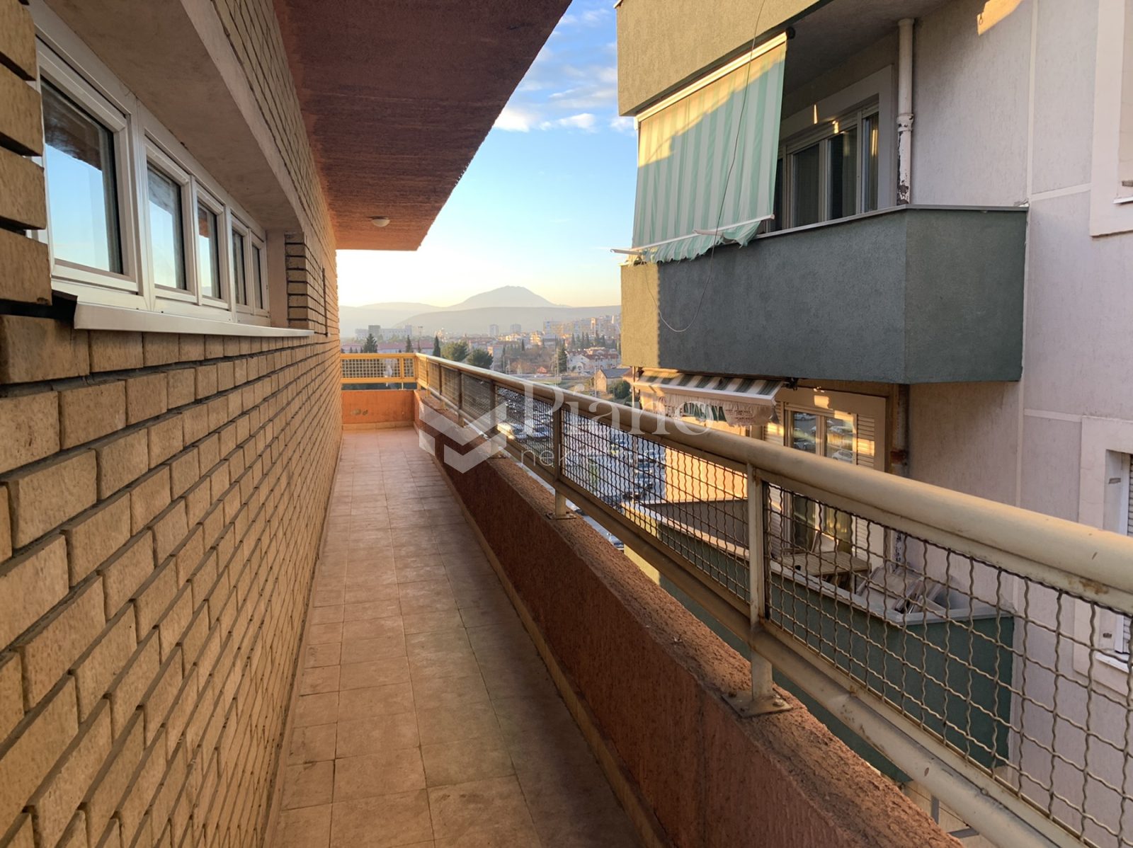 Unfurnished two bedroom apartment is located on the fourth floor of the building at the Old Airport, has a huge terrace on both sides of the apartment, bathroom and toilet, is air conditioned and has kitchen elements and a built-in closet in the room.