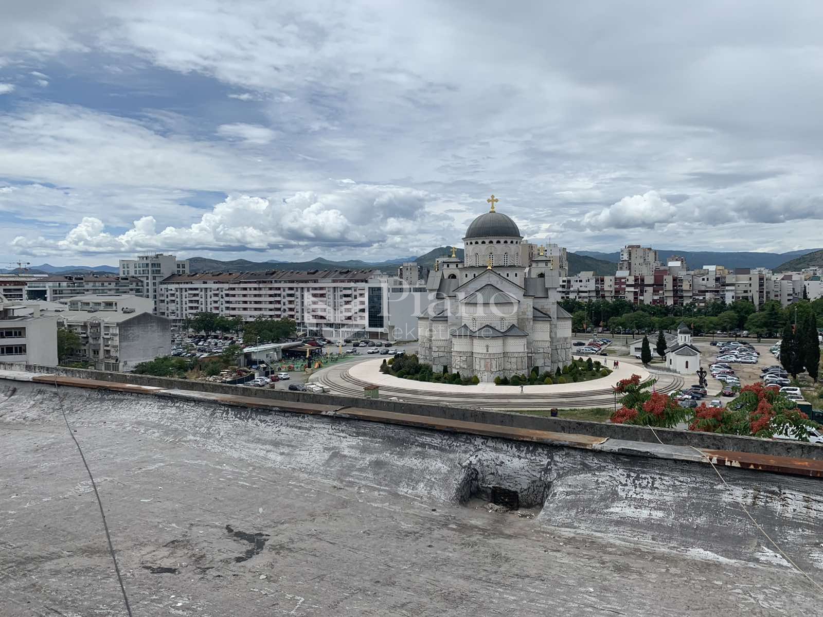 It has a large terrace overlooking the Church of Christ"s Resurrection and the boulevard.