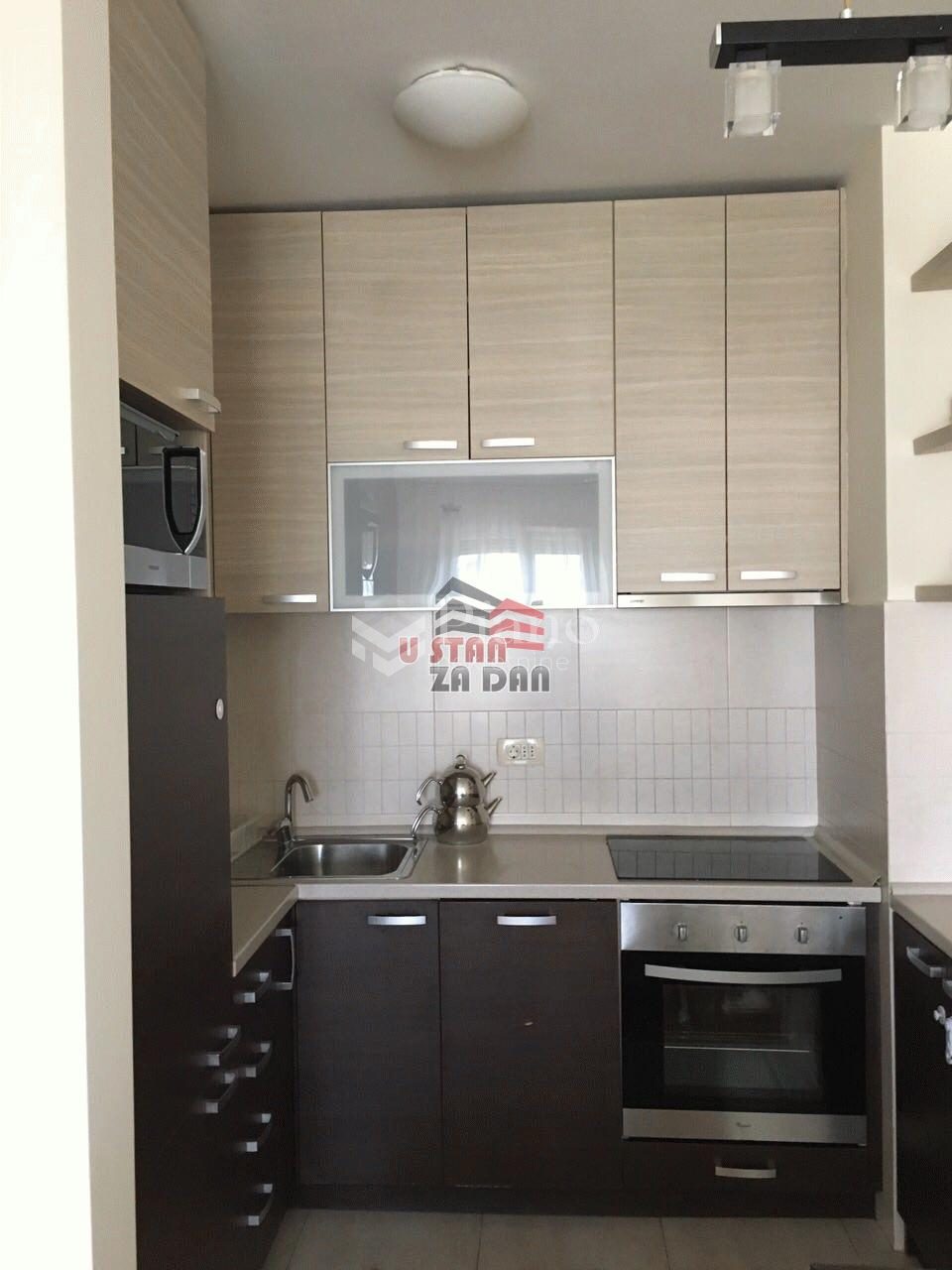 This modern furnished apartment is located on the seventh floor of the building Zetagradnje, which owns an elevator, near Gintaša. It is ideal for all who like comfort just a few streets away from the center, outside the city noise and crowds.