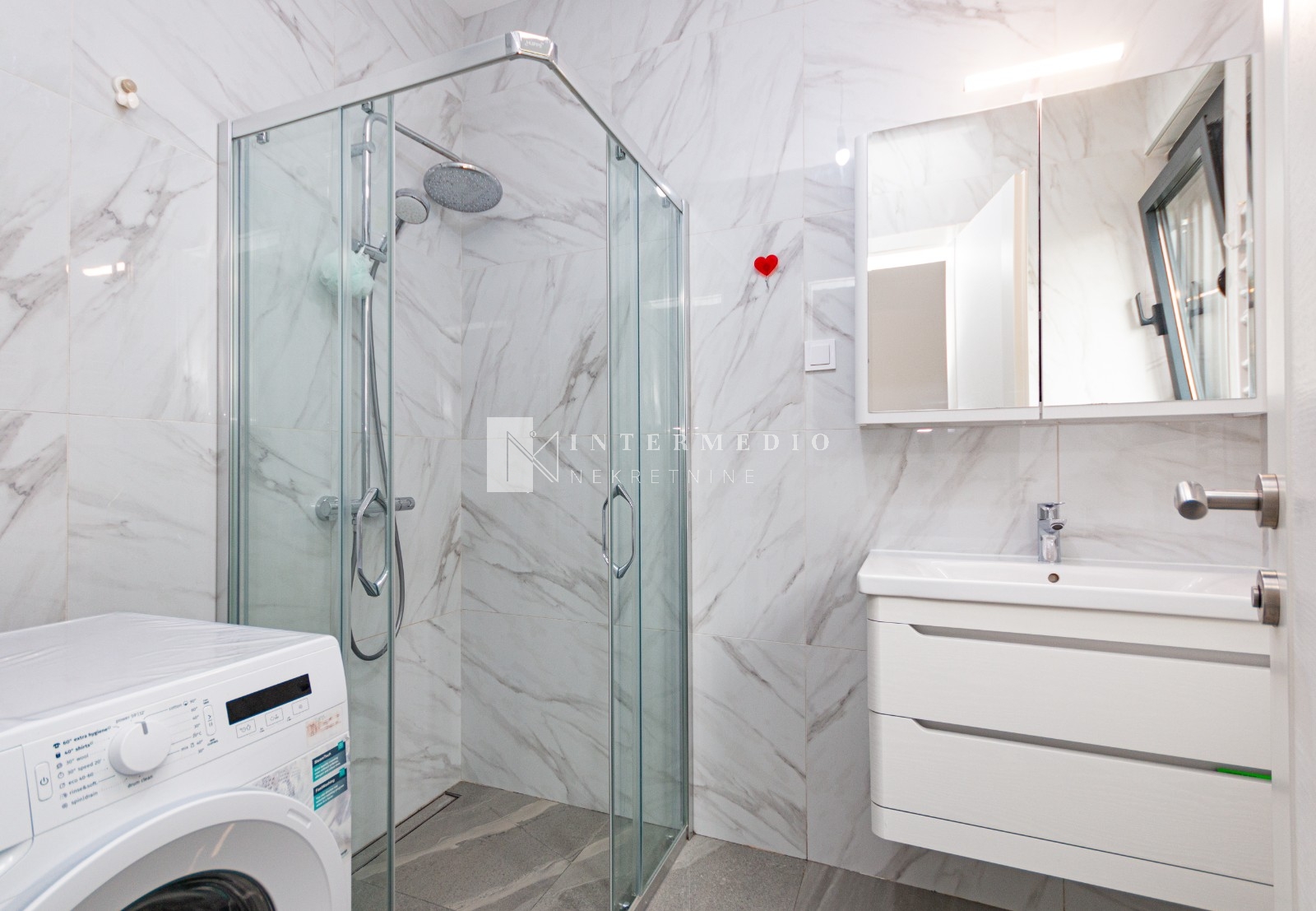 Stan je opremljen elektro roletnama koje pružaju kontrolu nad svjetlom i privatnošću, dok sistem grijanja i hlađenja na Fan Coill omogućava ravnomjerno distribuiranu temperaturu u svim prostorijama, osiguravajući komfor tokom cijele godine.