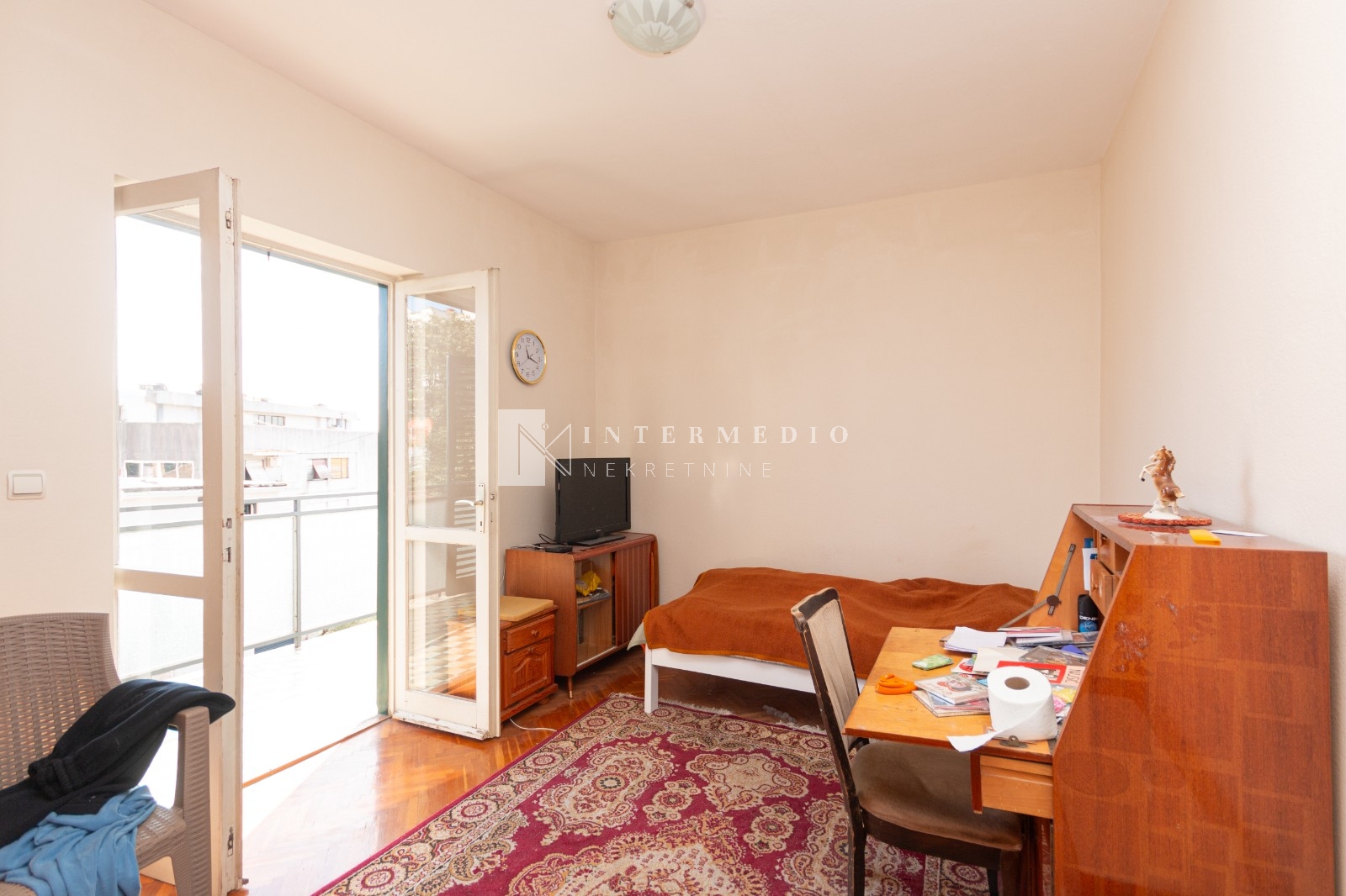 Sprat: Trosoban stan sa kupatilom i toaletom, dnevni boravak sa po potrebi vratima odvojenom kuhinjom i trpezarijom.