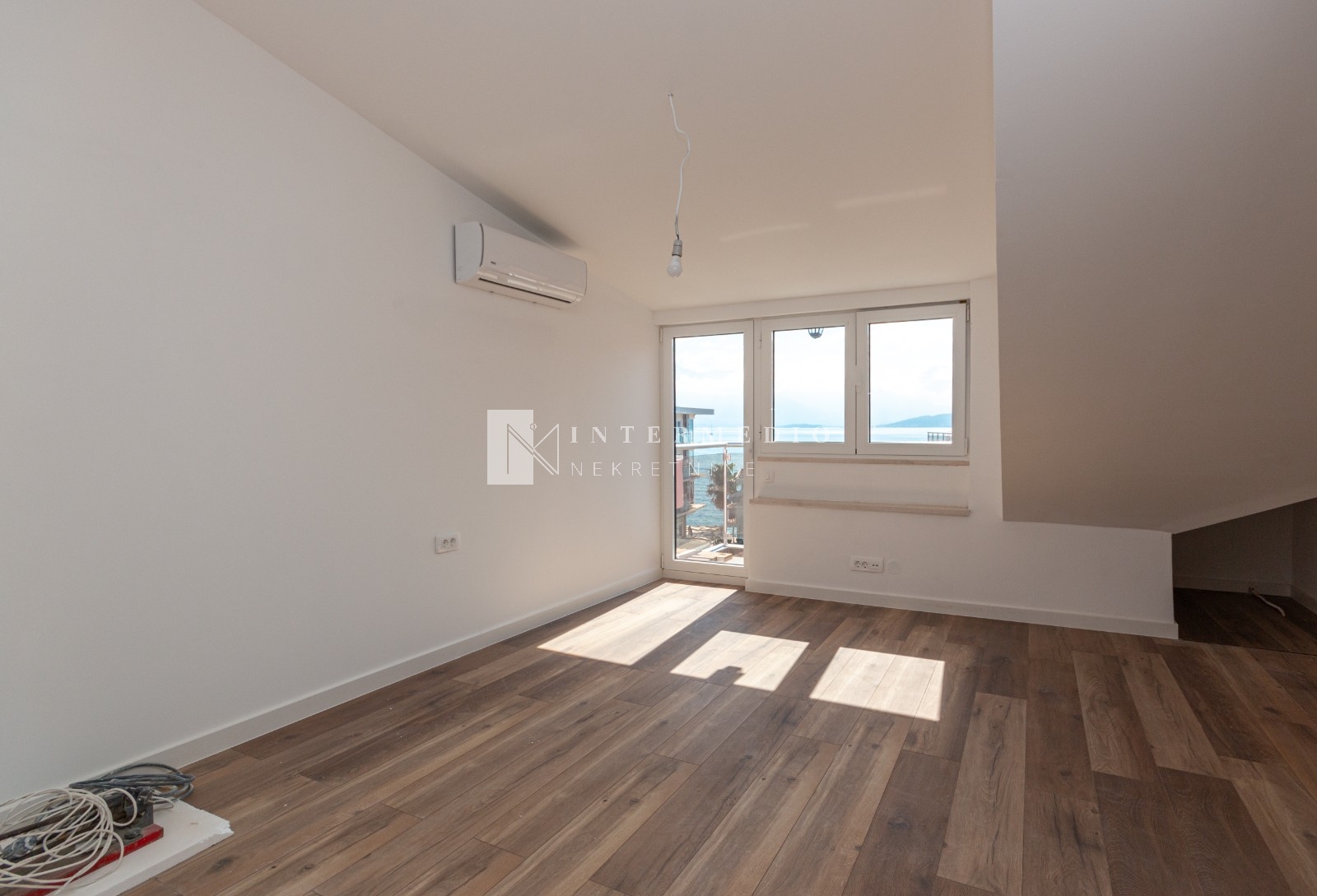 Struktura: ulazni hodnik iz koga se dolazi do spavaće sobe sa terasom i garderoberom, kupatila, open space dnevni boravak, kuhinja, trpezarija i ostava, velika terasa sa prelijepim pogledom na more, spavaća soba.