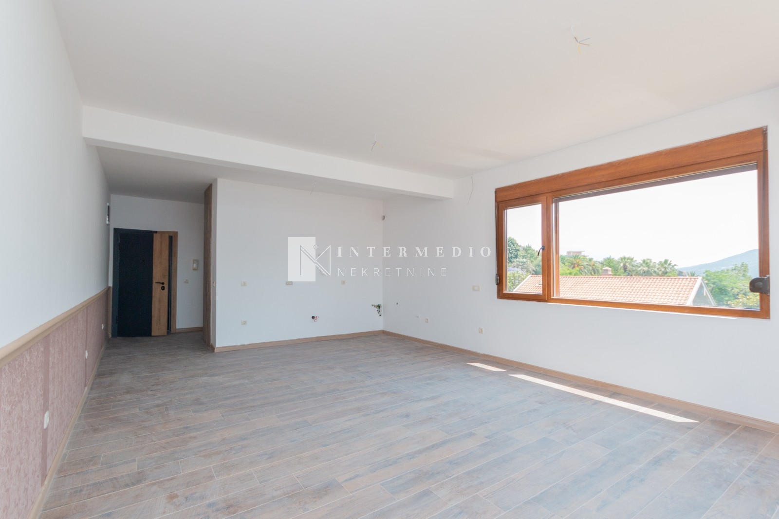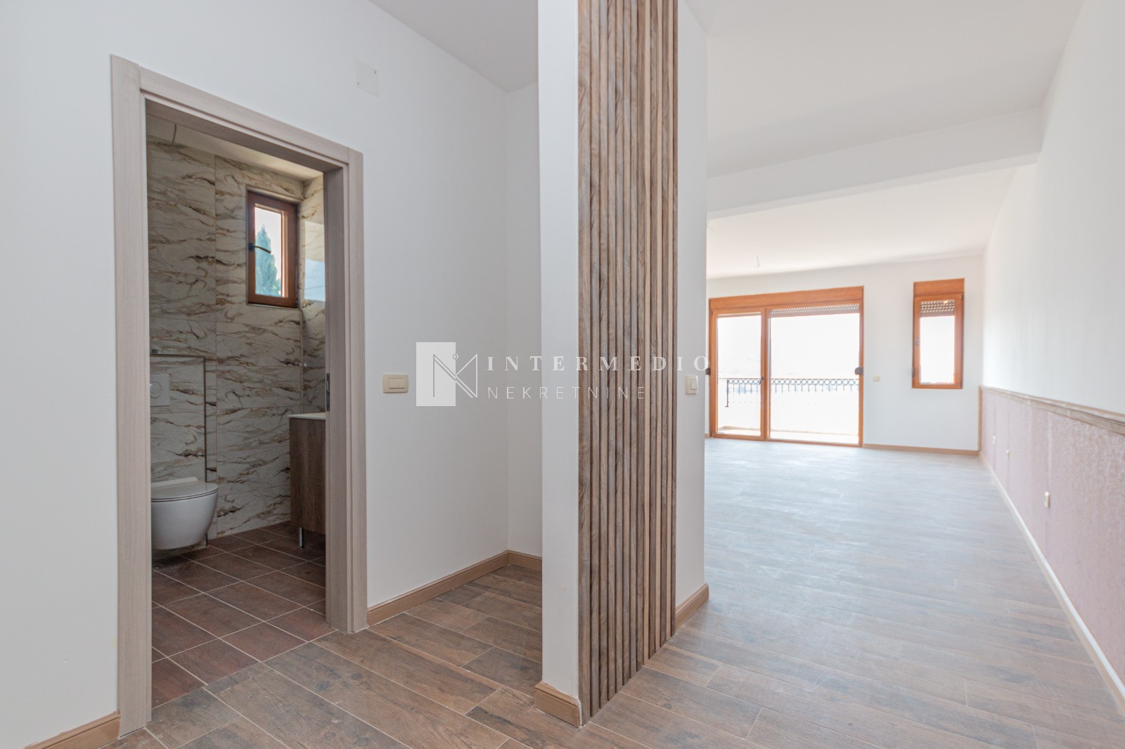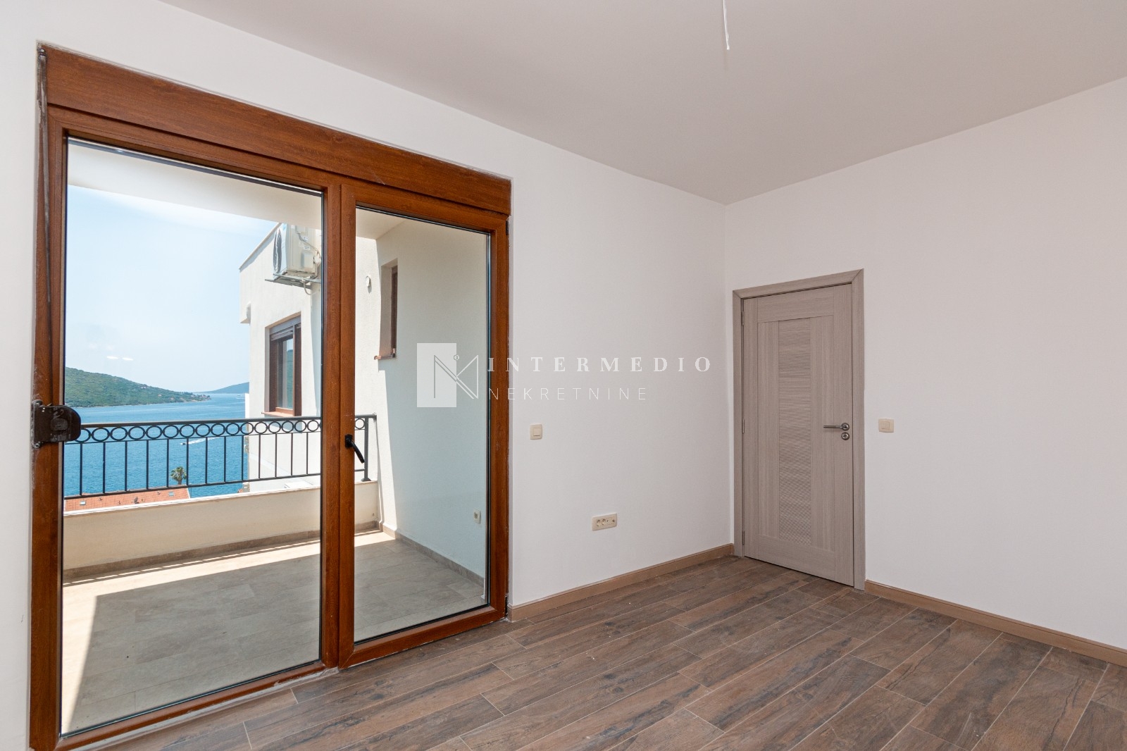 Struktura stana: Ulazni hodnik, prostran dnevni boravak, kuhinja i trpezarija sa pogledom na more i terasom, kupatilo, spavaća soba sa terasom, hodnik koji se moze vratima zatvoriti nakon čega dobijate garderober kupatilo i spavaću sobu (master bedroom).