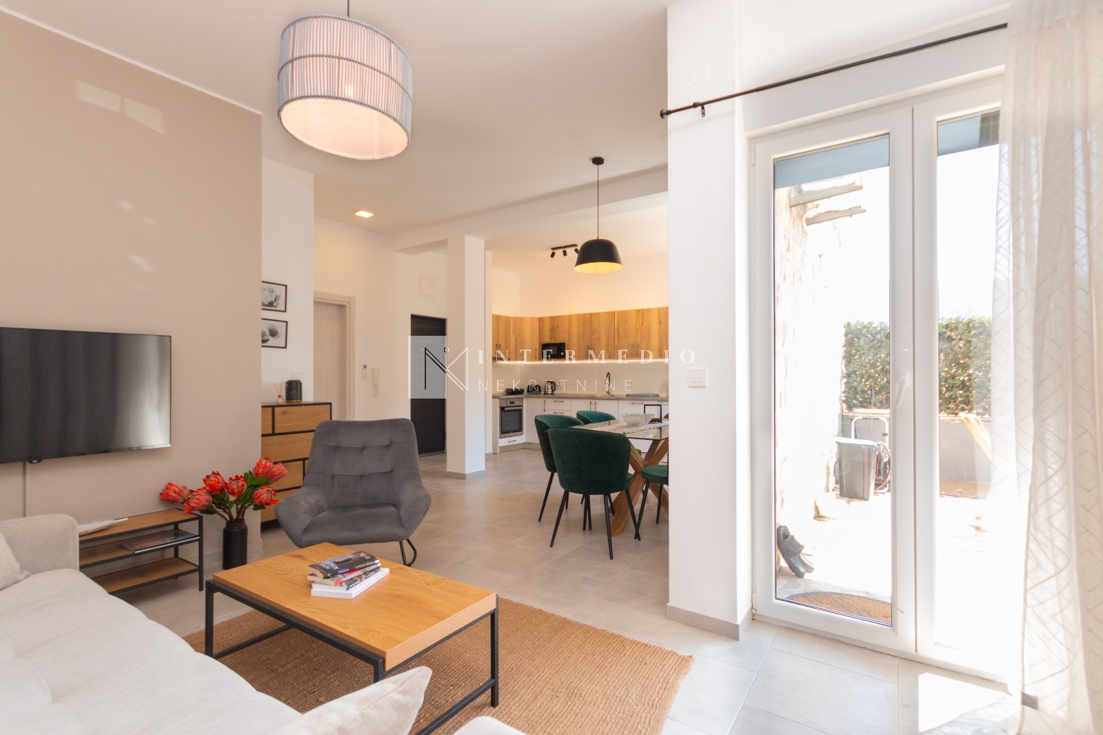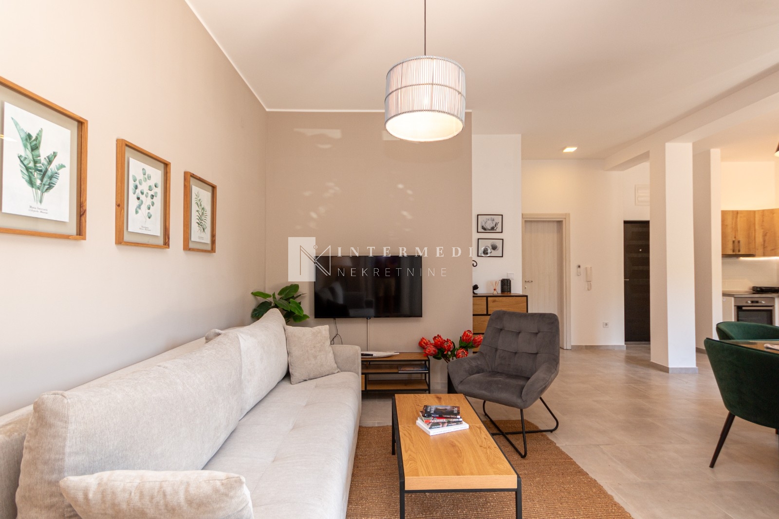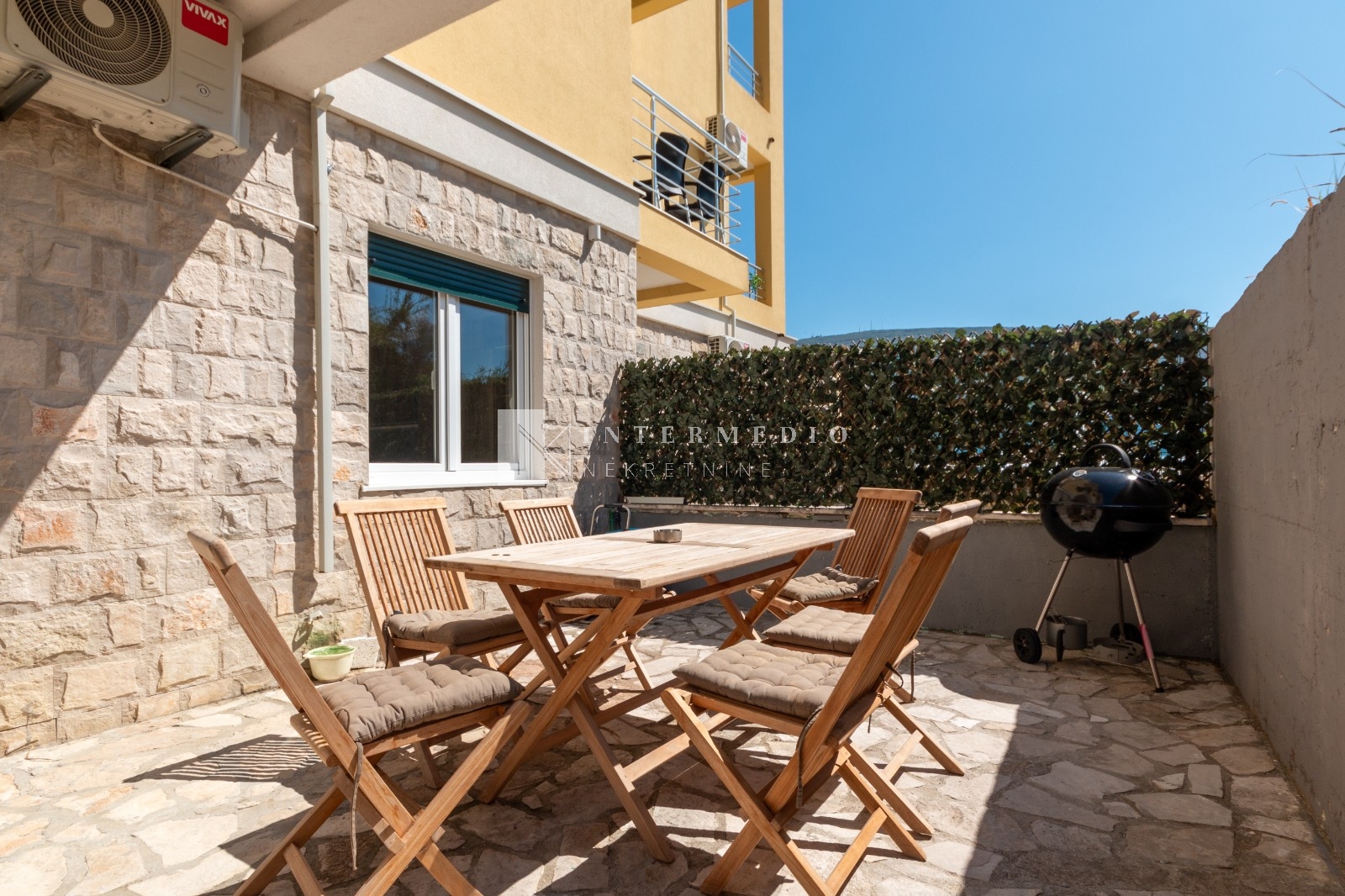 Na prodaju je jednosoban, moderno opremljen stan površine 50m² sa prostranom terasom iste kvadrature, smješten na izuzetnoj lokaciji – svega 300 metara ravnog hoda do plaže i u neposrednoj blizini prestižnog kompleksa Portonovi.
