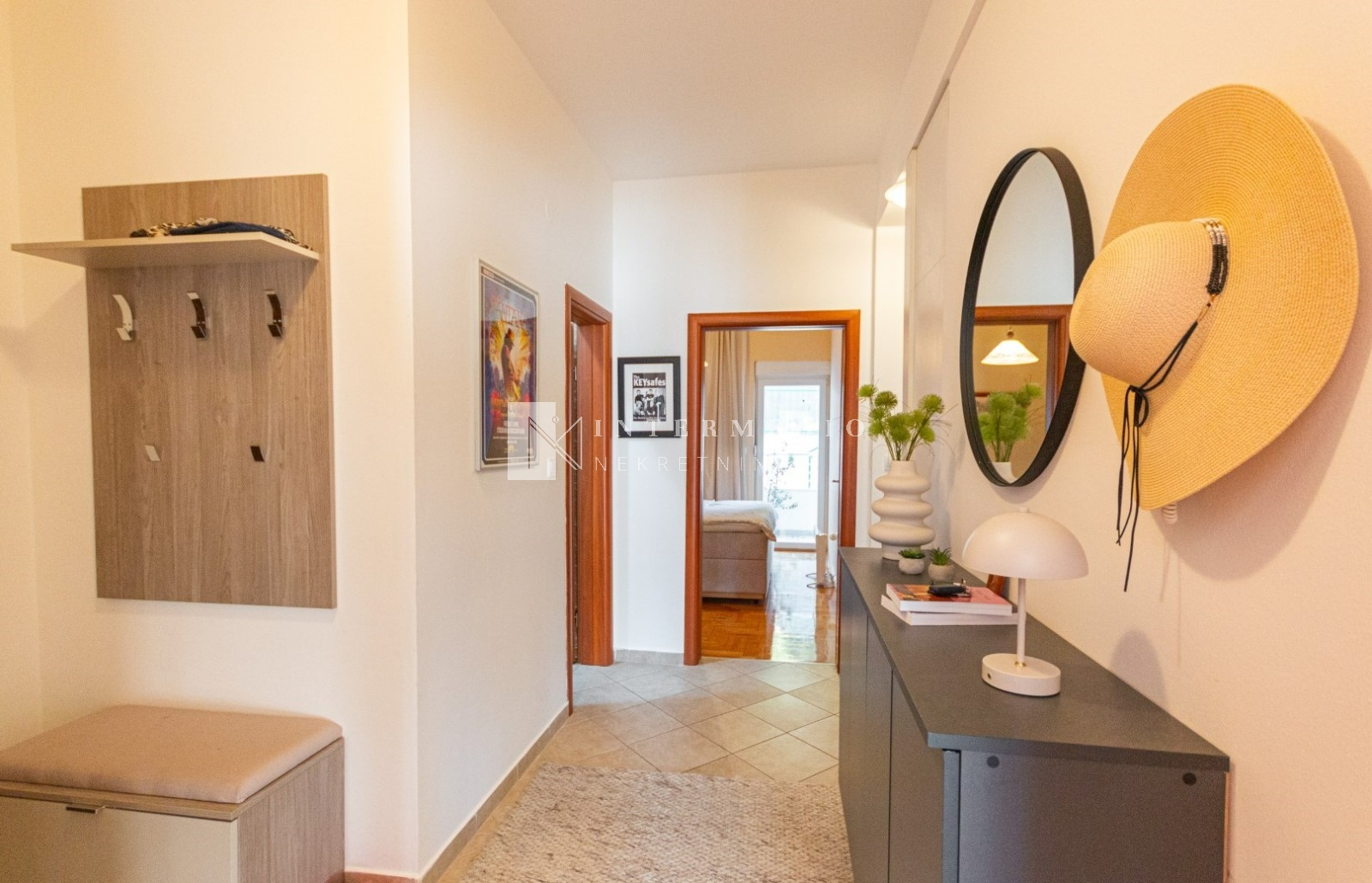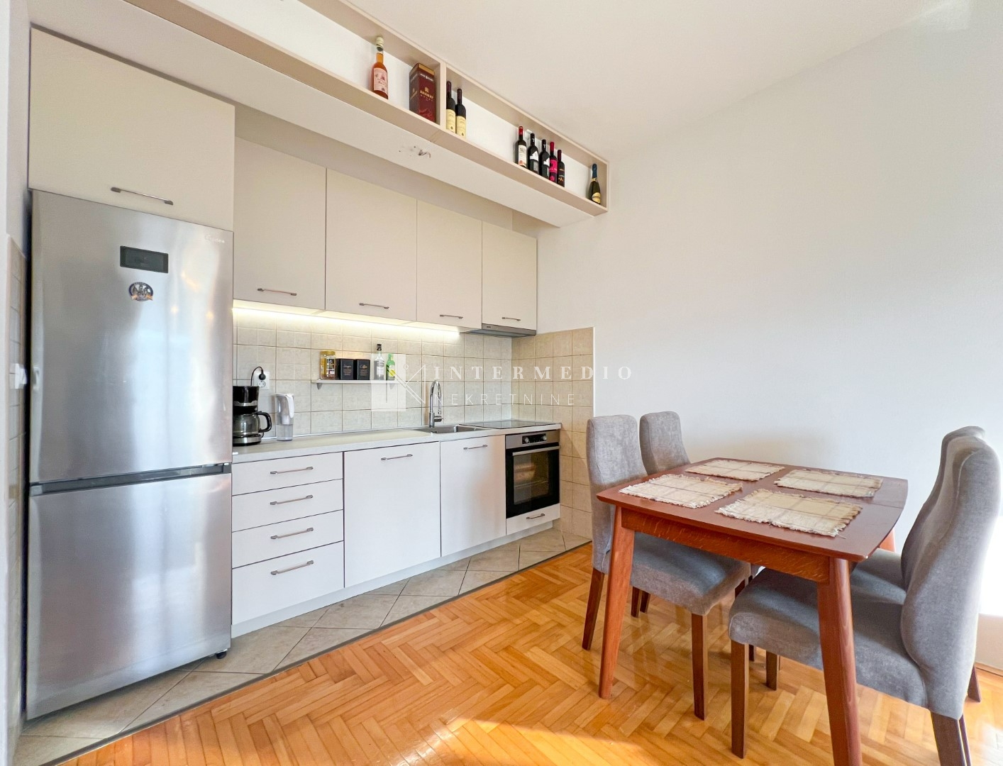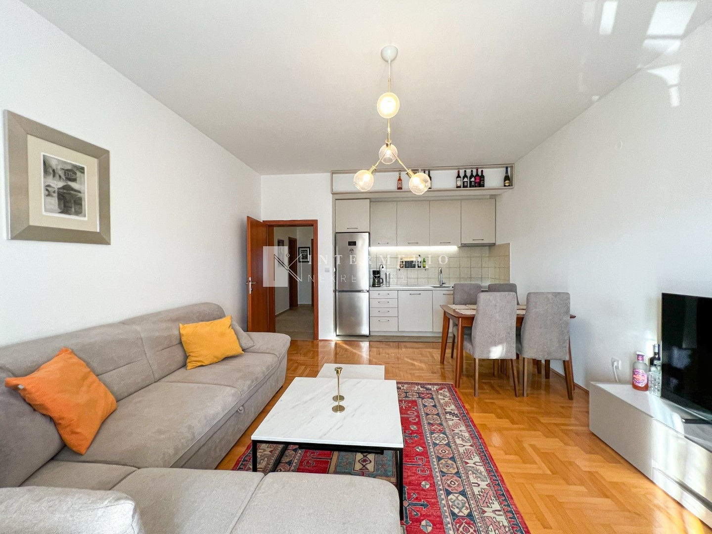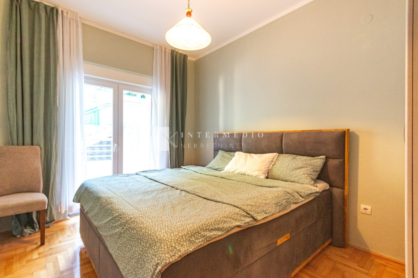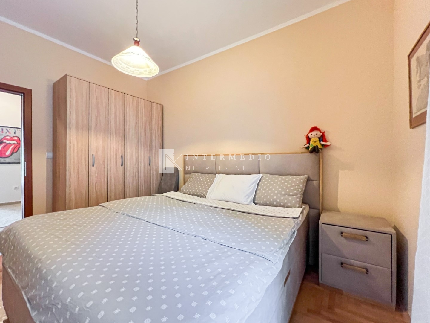 Struktura stana: prostran hodnik sa namještajem po mjeri, kupatilo, wc, dvije spavaće sobe sa izlazom na terasu, boravak i kuhinja koji su južno orjentisani sa terasom i pogledom na more.