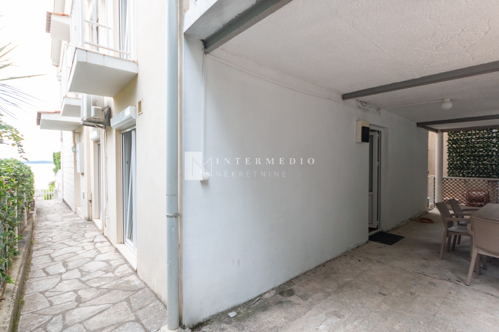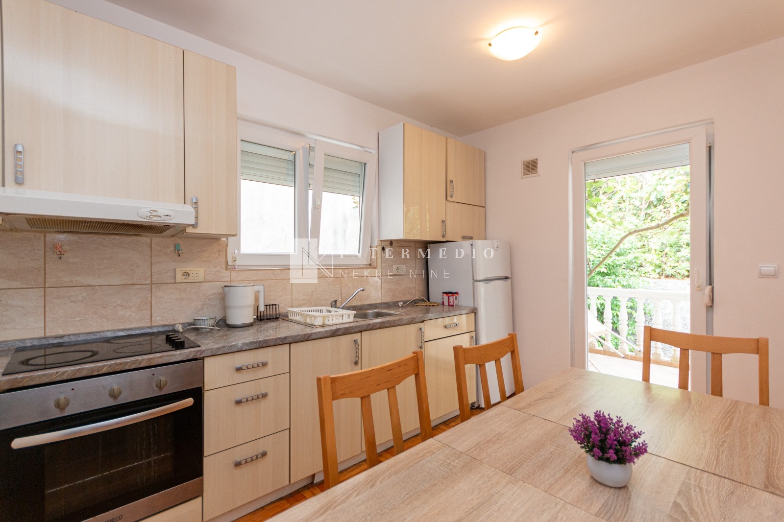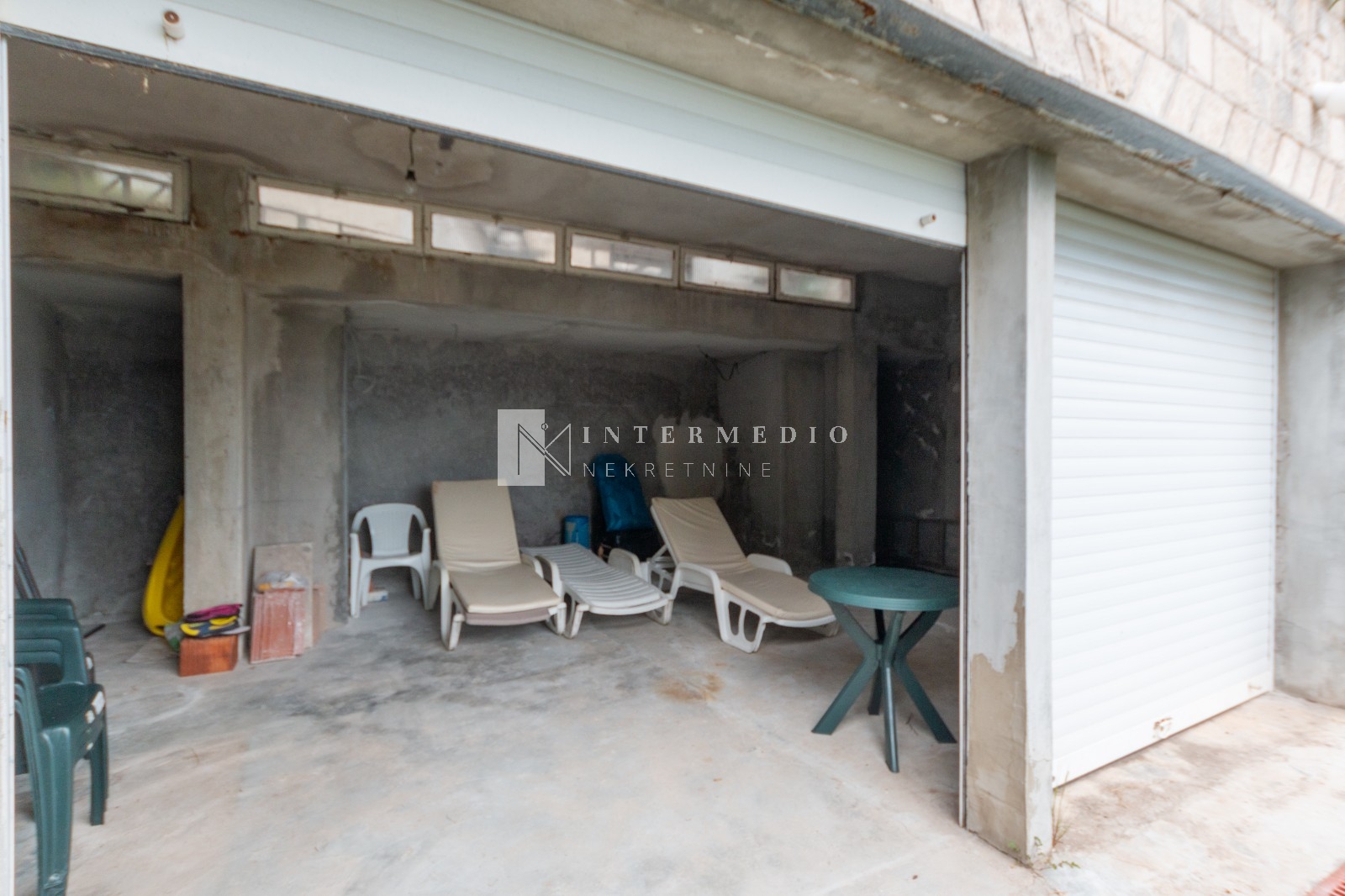 - Prvi sprat: Hodnik, odvojena kuhinja i trpezarija, dnevni boravak, kupatilo, 2 vrlo male terase sa bočnim pogledom na more, velika ulazna terasa.