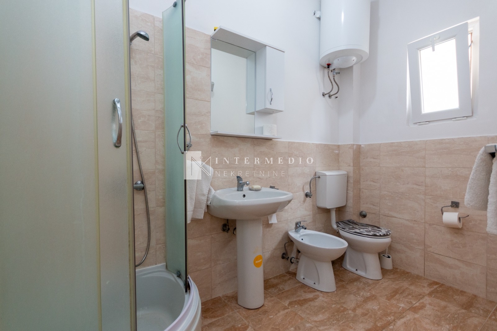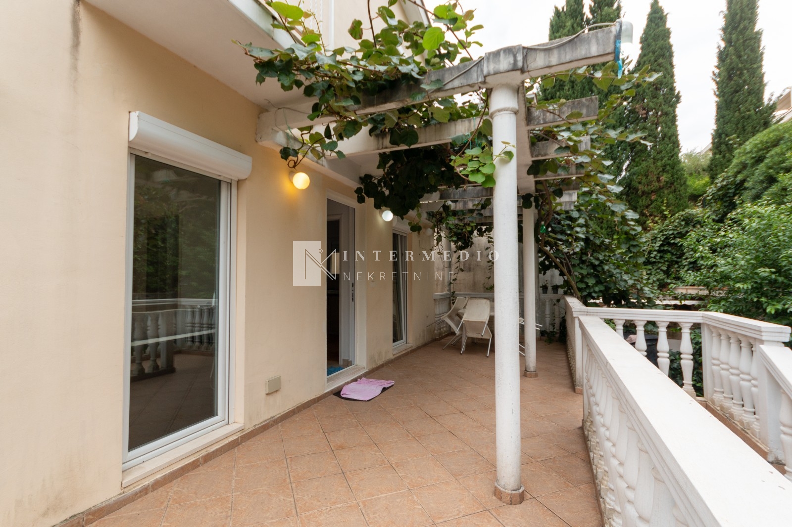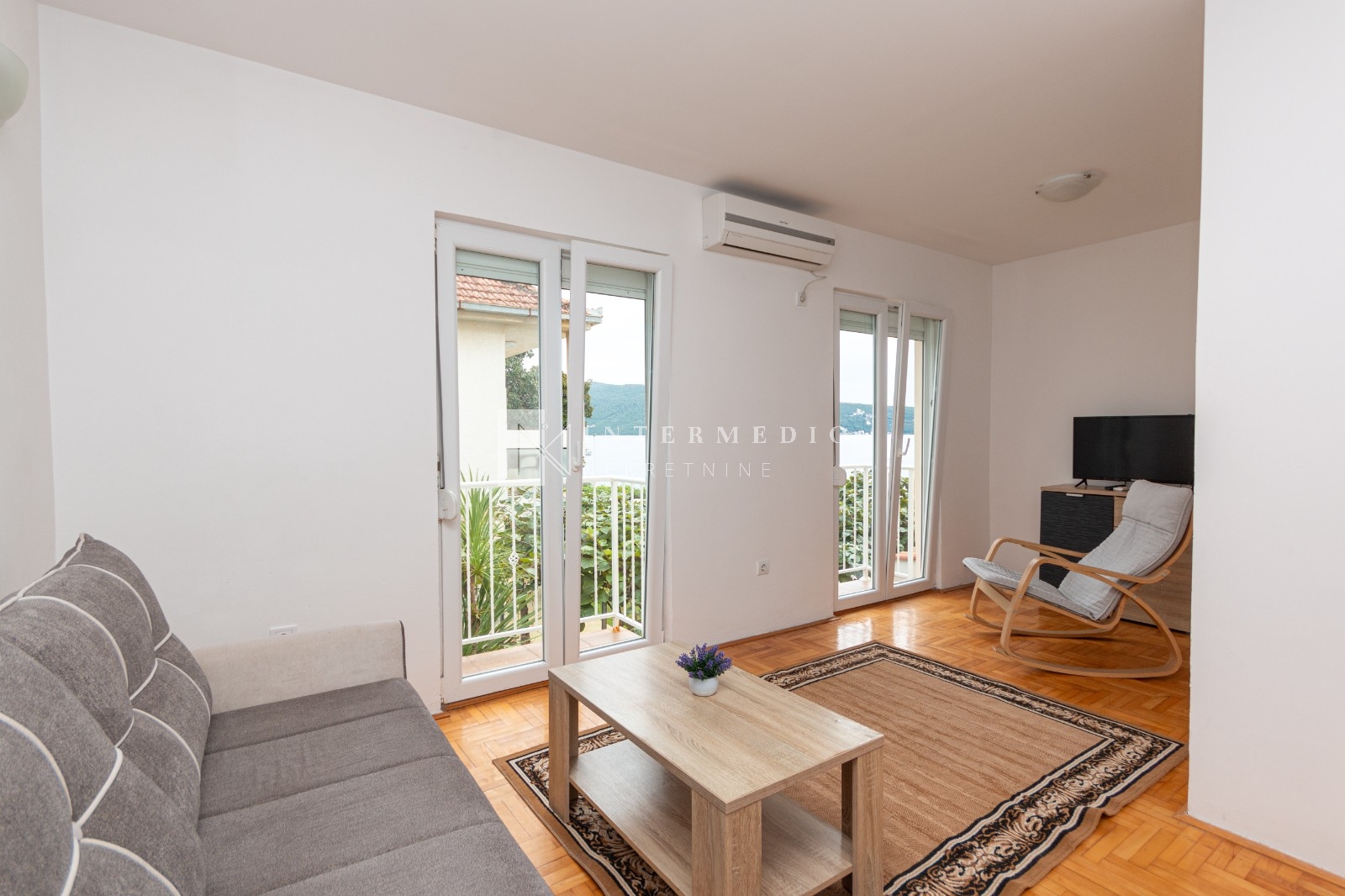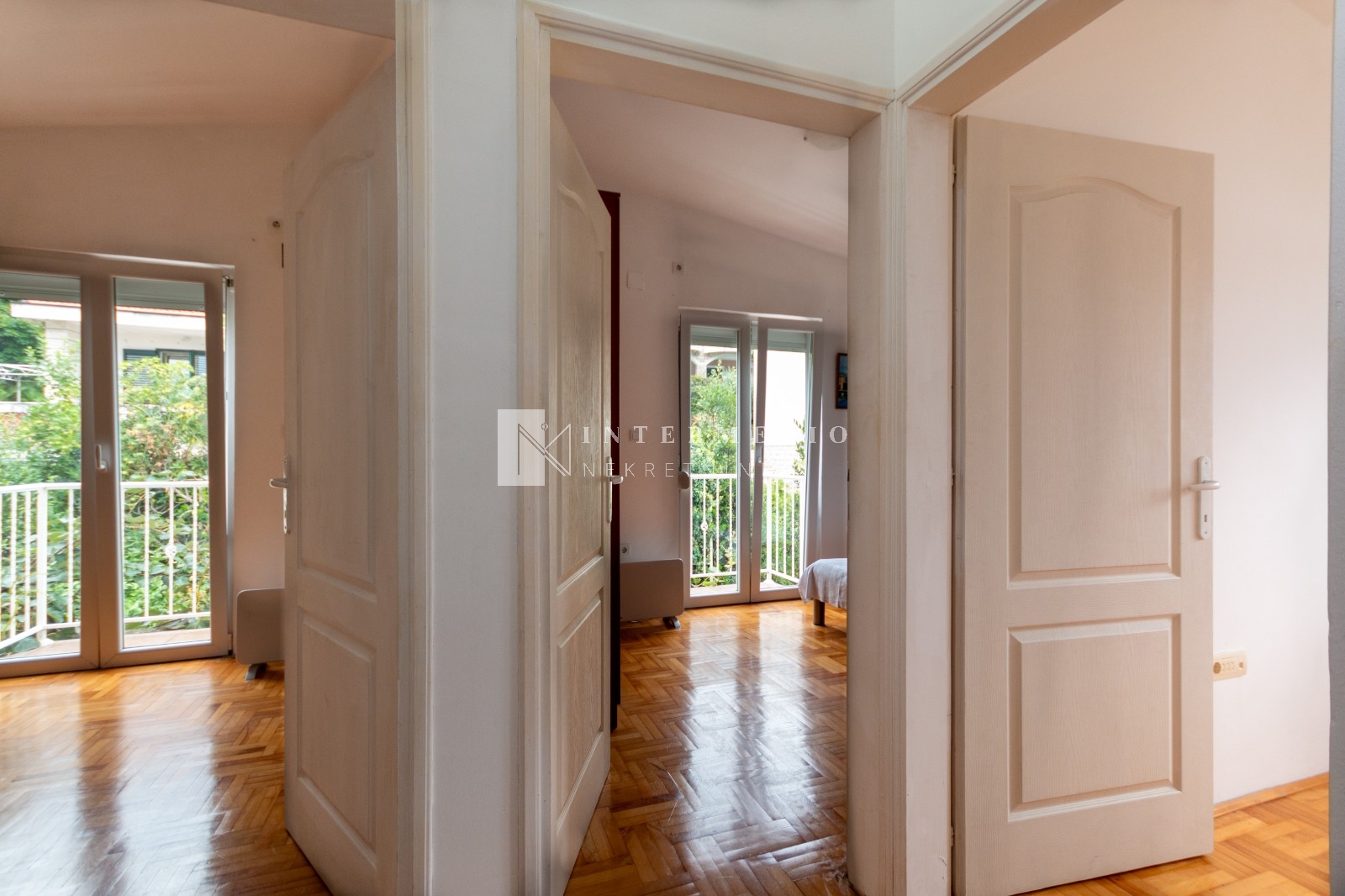 - Prvi sprat: Hodnik, odvojena kuhinja i trpezarija, dnevni boravak, kupatilo, 2 vrlo male terase sa bočnim pogledom na more, velika ulazna terasa.