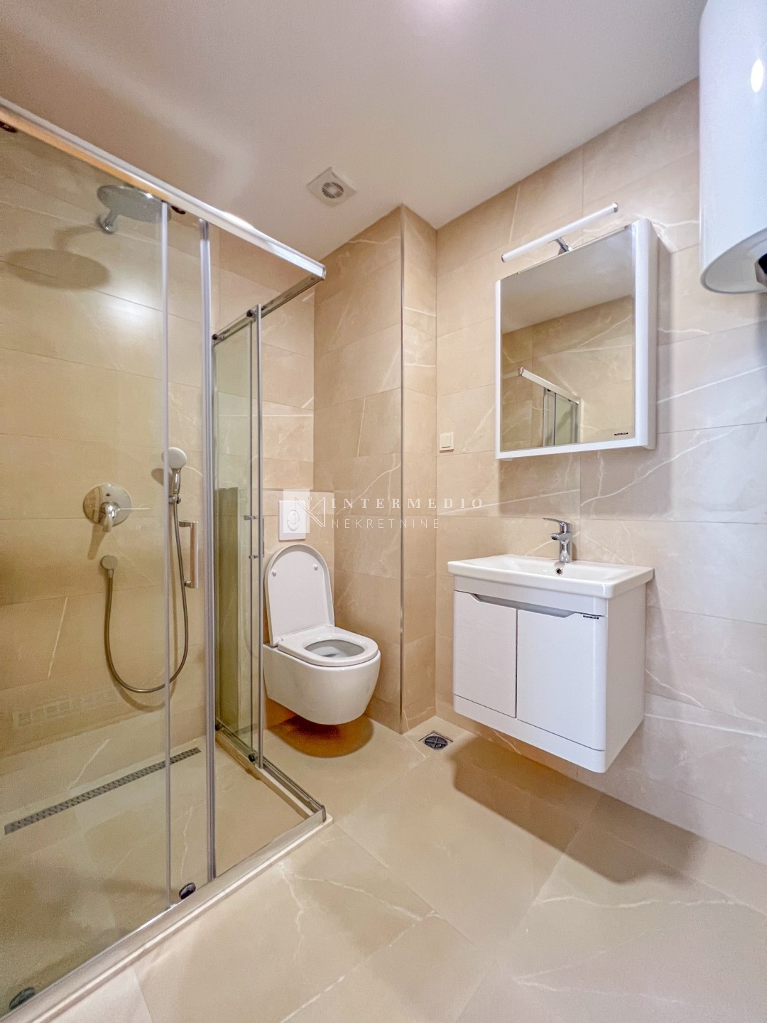 Stan je opremljen podnim grijanjem, multi split sistemom klima uredjaja u svakoj prostoriji, granitno poliranim plocicama i blind vratima italianskog proizvodjaca.