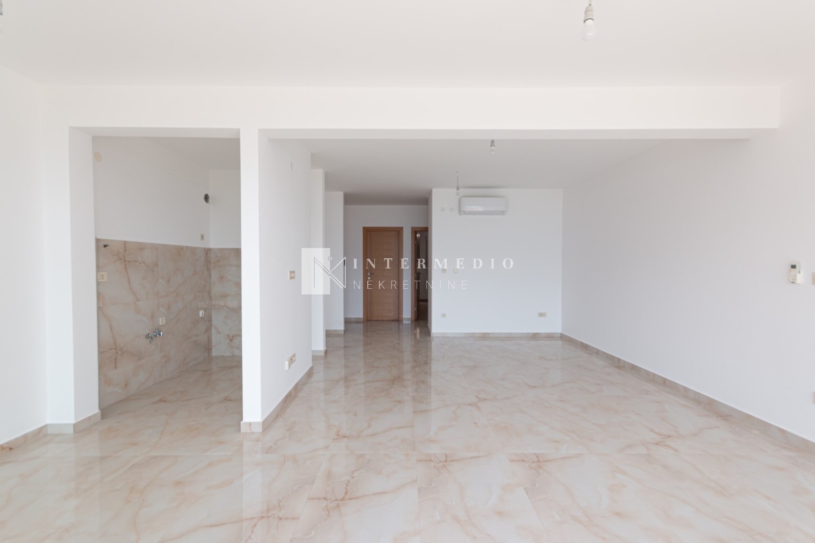 Struktura stana: Ulazni hodnik, dva kupatila od koga jedno sa saunom, dvije spavace sobe sa izlazom na terasu, prostrani dnevni boravak sa kuhinjom,