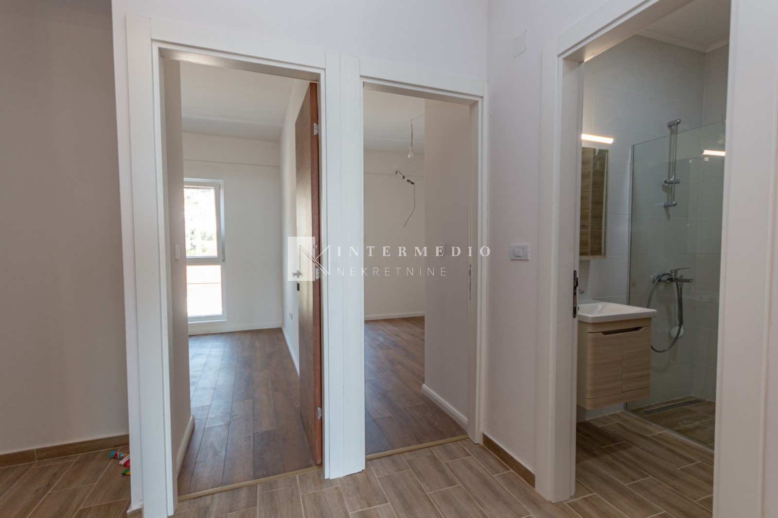 Struktura stana: Hodnik sa prostorom za ugradni ormar, dvije spavace sobe sjeverno, kupatilo, dnevni boravak sa kuhinjom i trpezarijom juzno orjentisani sa terasom i pogledom na more.