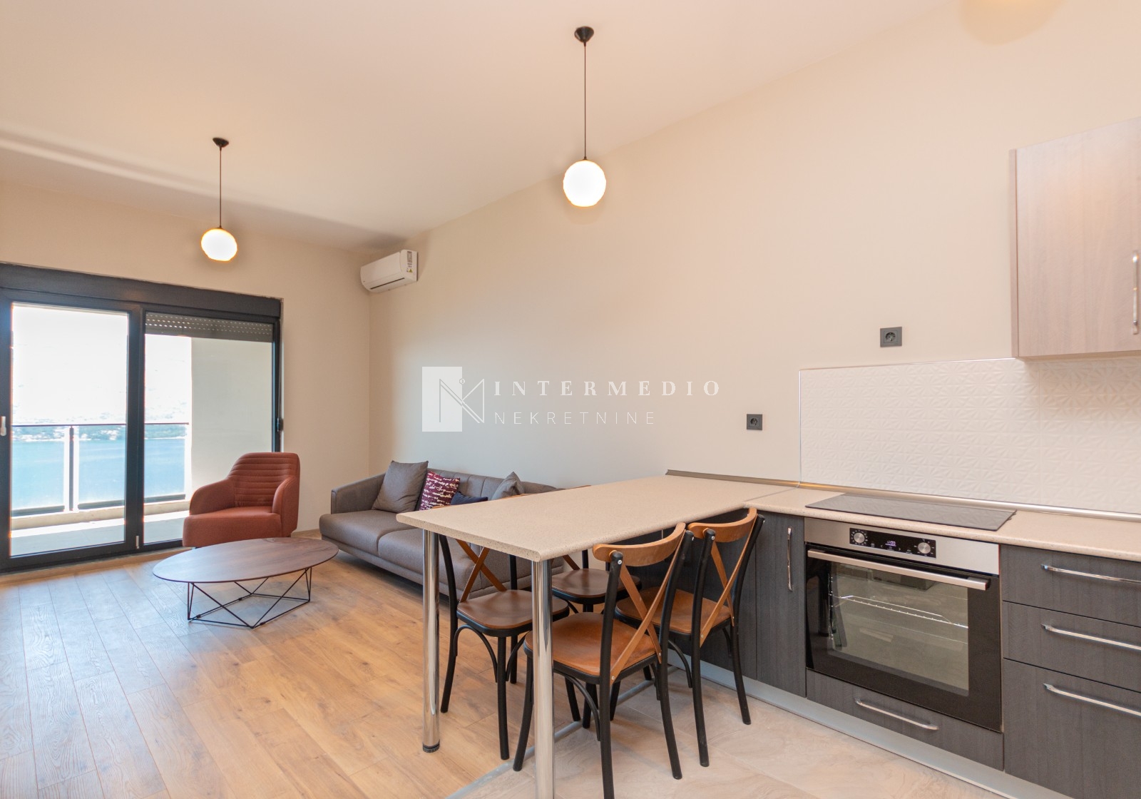 DaKompletno opremljen stan u novogradnji, sa južnom orijentacijom i panoramskim pogledom na more iz dnevne i spavaće sobe. Veliki balkon pruža izuzetan ugođaj i dodatnu vrednost.