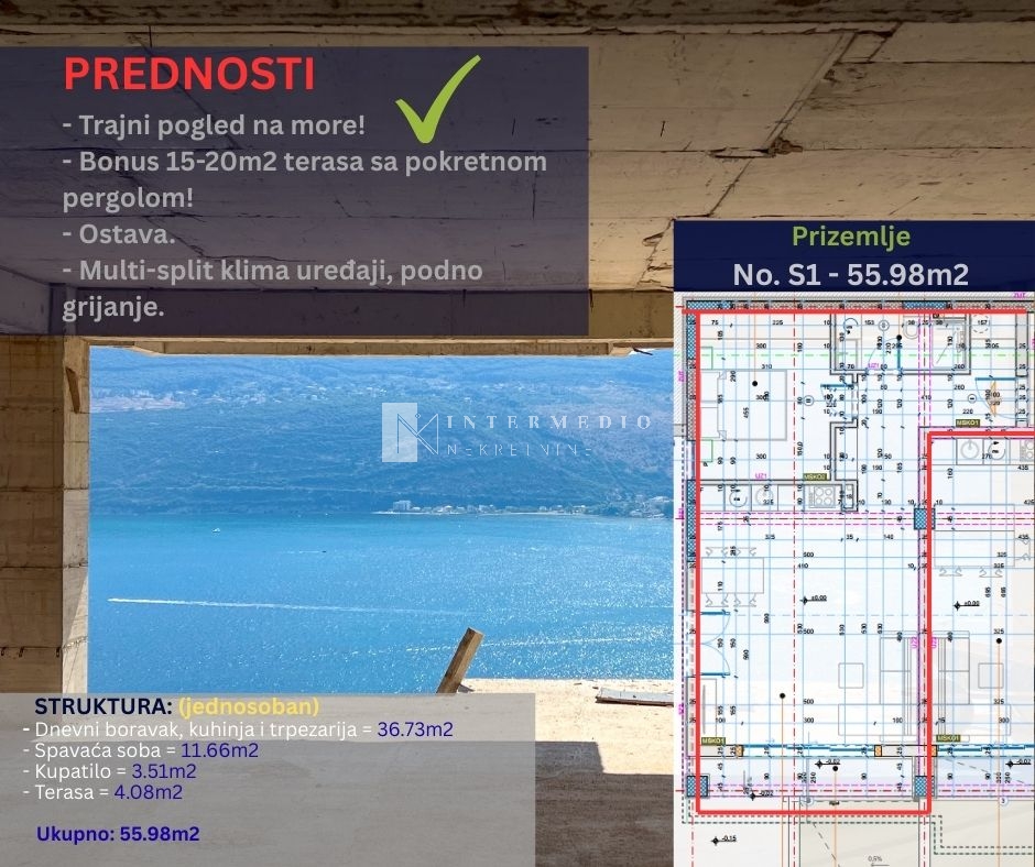 Jednosoban stan sa fenomenalnim pogledom na more, jugozapadno...