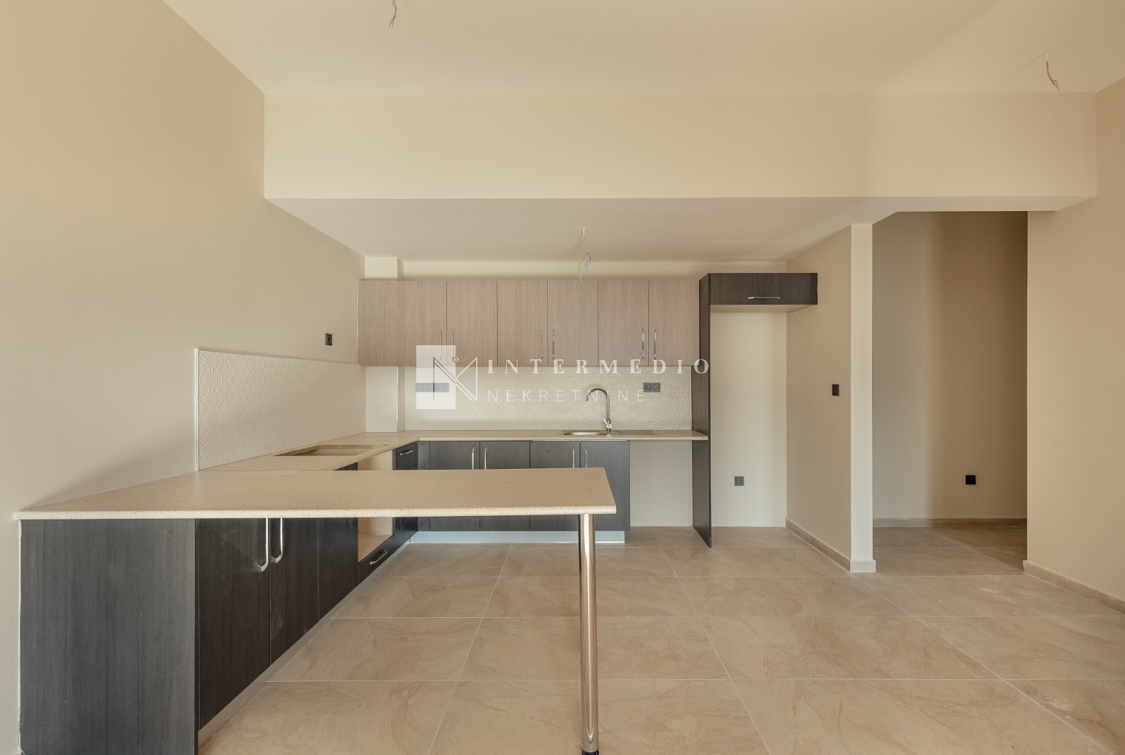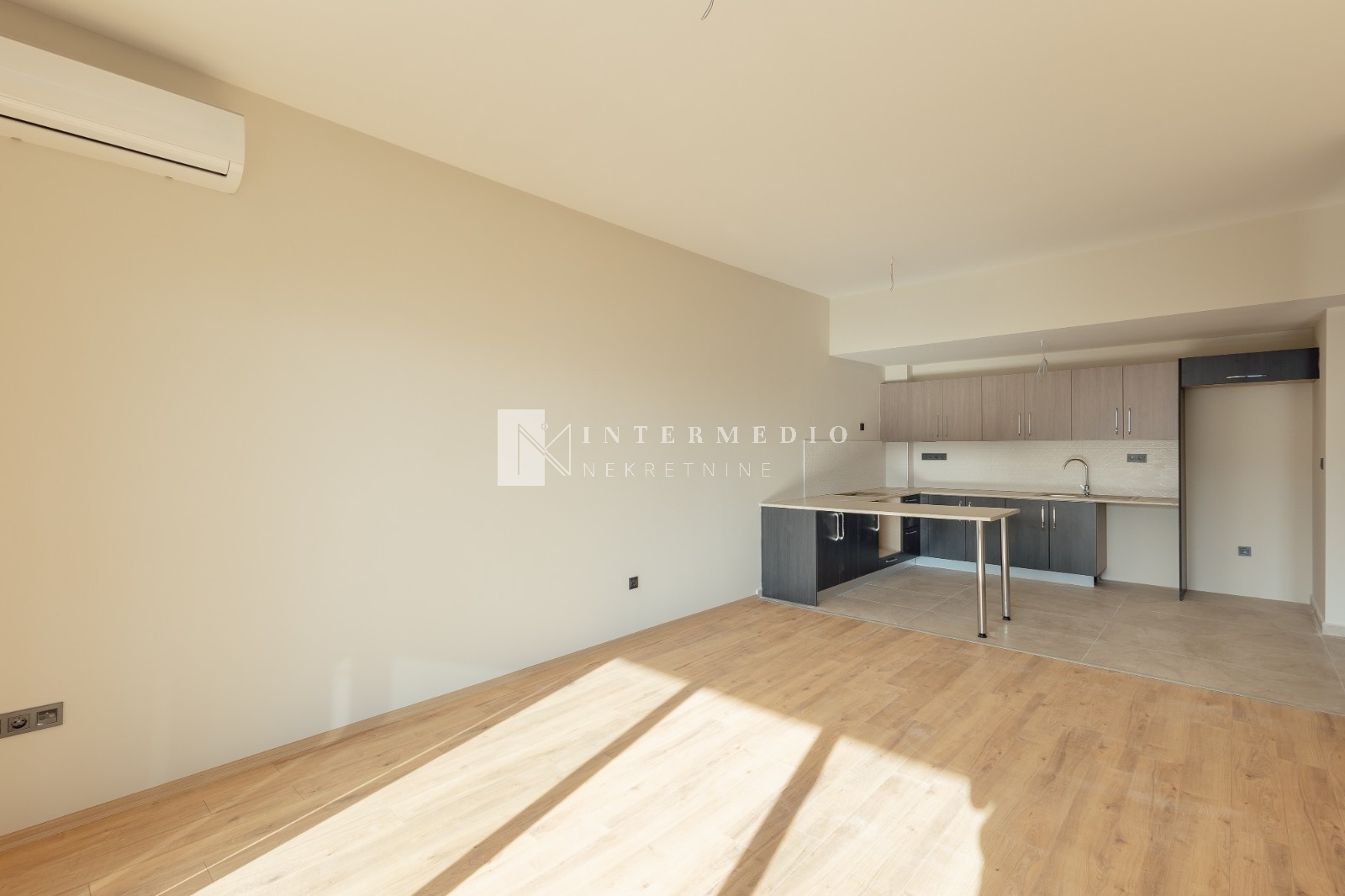 Opremljen kuhinjskim elementima bez bijele tehnike, kupatilskom sanitariom i klima uredjajem u dnevnoj sobi.