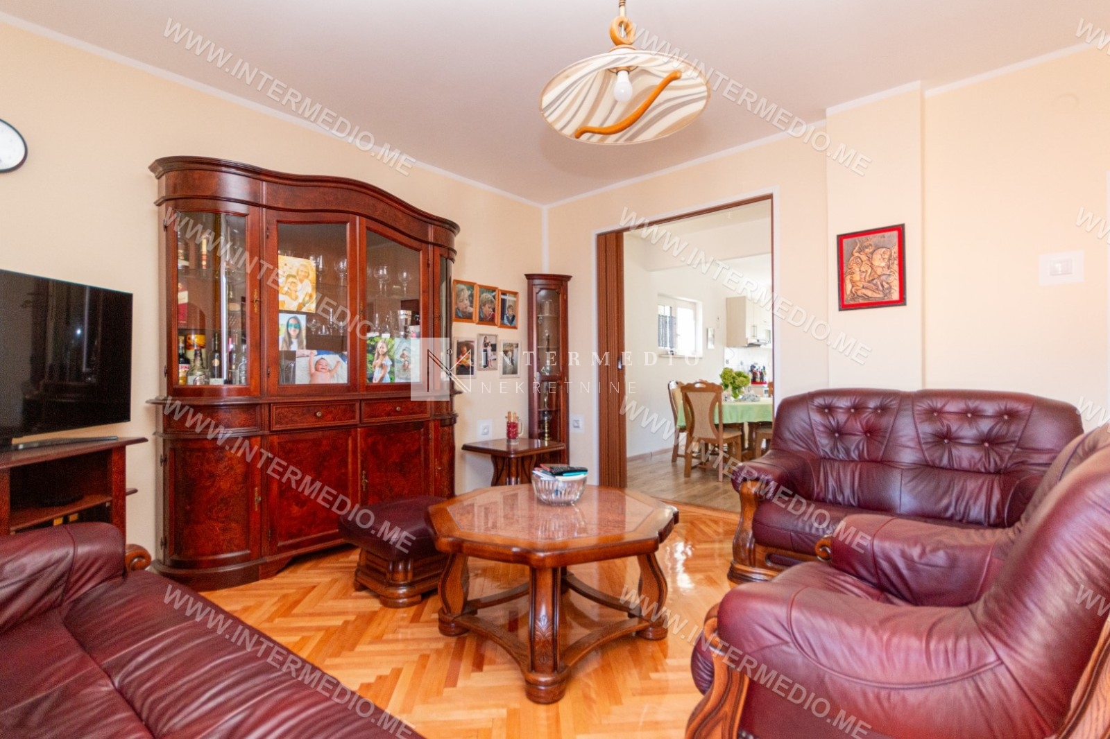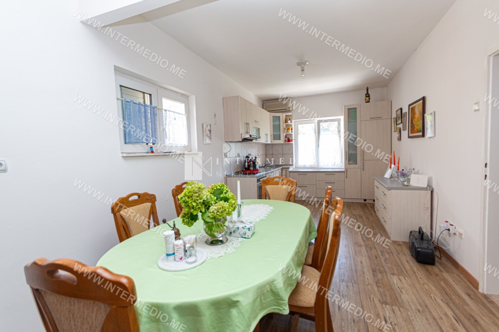 Drugi sprat 112m2, dvije spavaće sobe, kuhinja sa trpezarijom, dnevna soba, kupatilo.