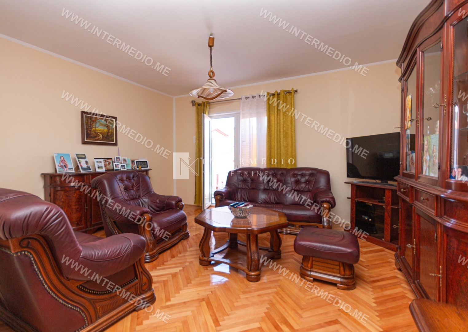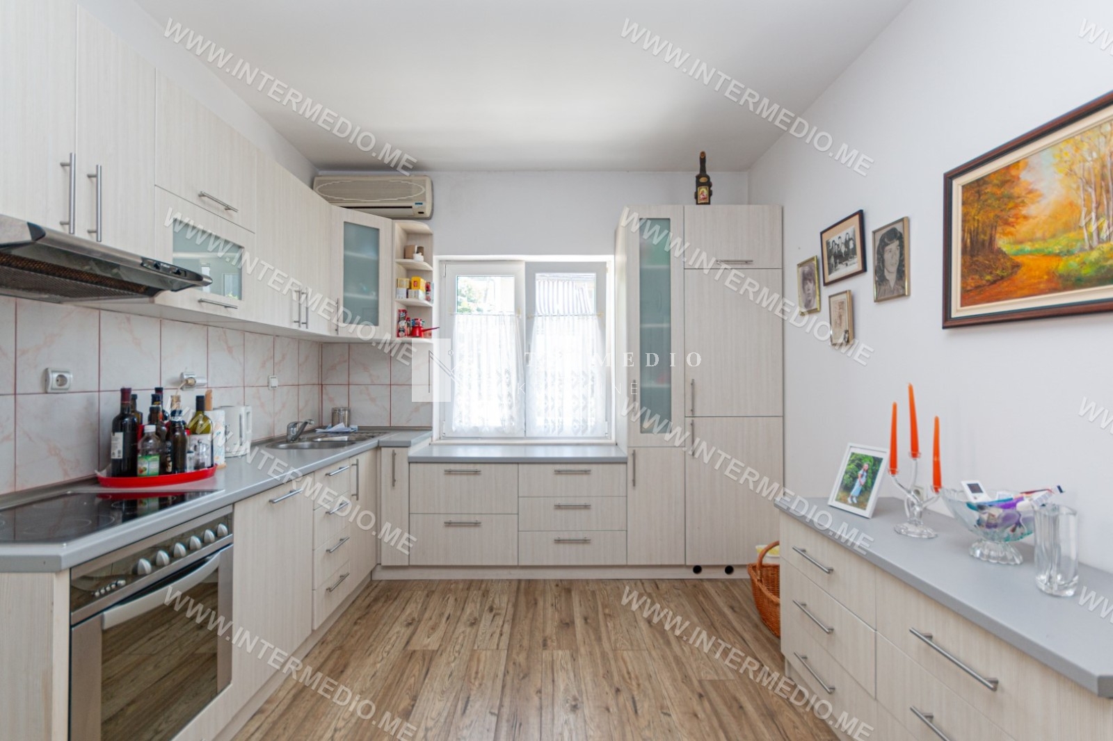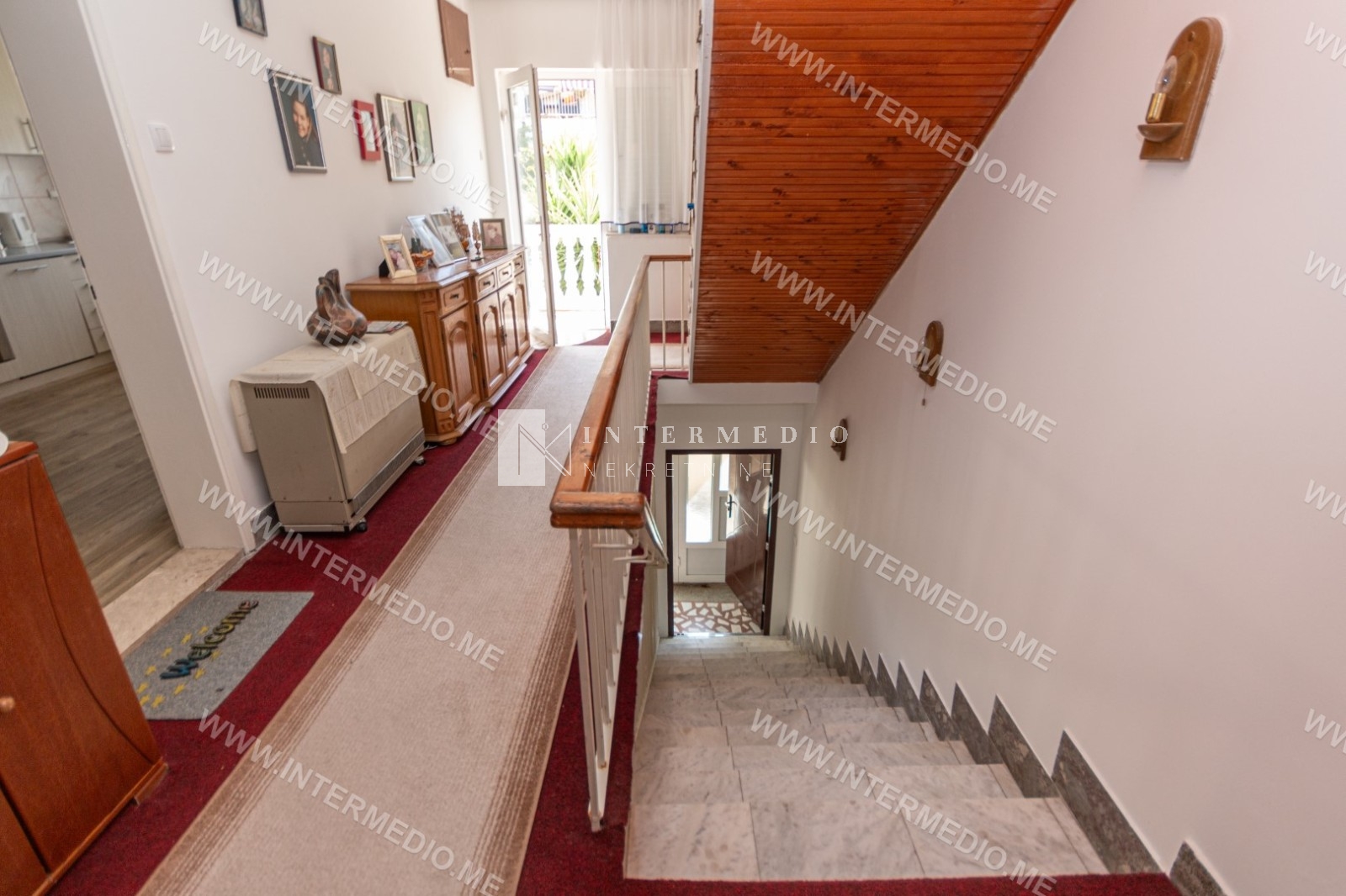DaKuća se sastoji od dva stana + prizemlje, dje se nalazi jedan apartman cc. 38m2 + garaža i ispred 3 parking mjesta.